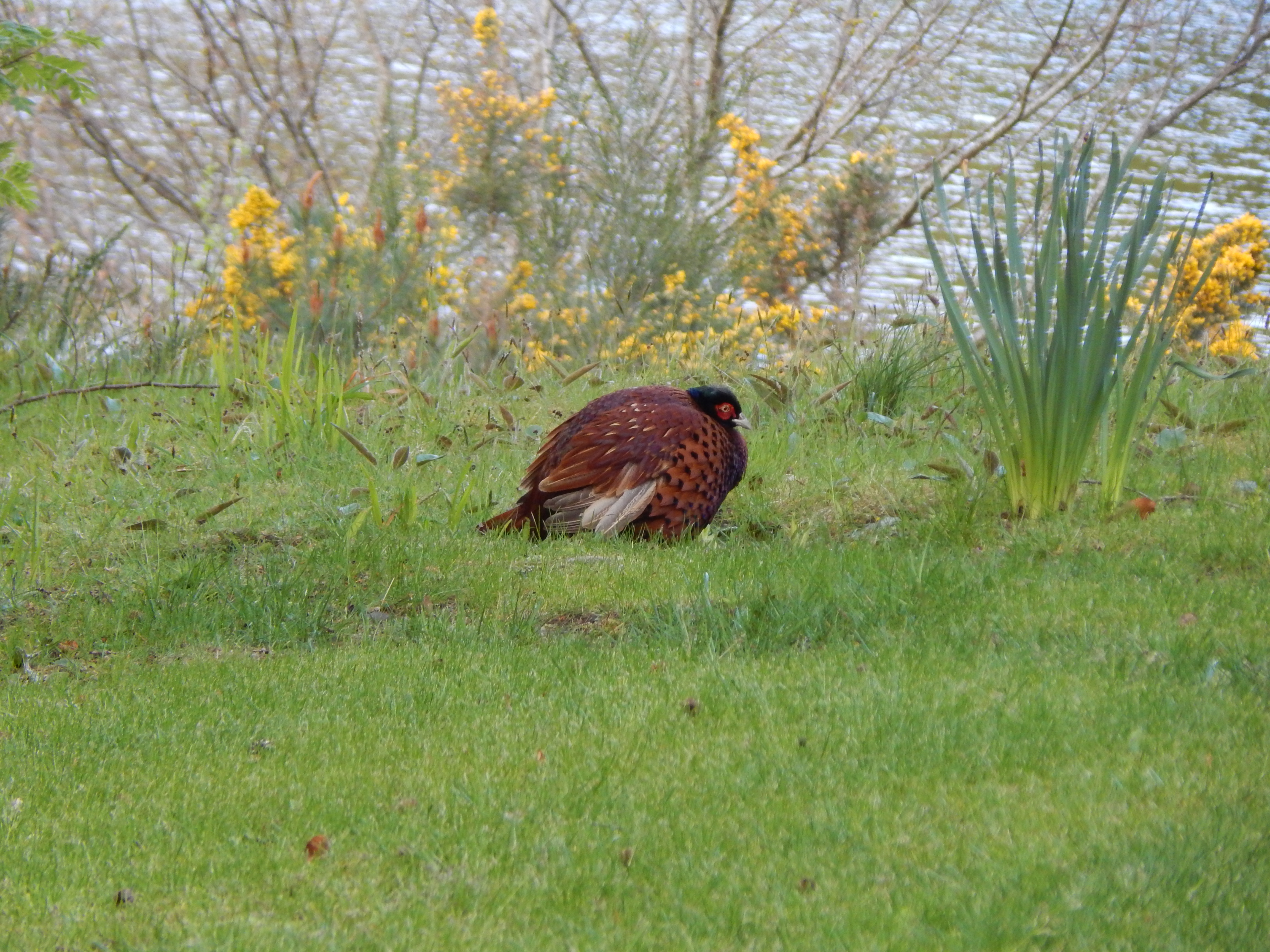 Since I was up (and hadn’t had a chance to stock up on any food), I headed out to Crieff bright and early…about 8 am. It was such a beautiful morning that I couldn’t keep from snapping a few pictures of Loch Faskally and the local pet pheasant.