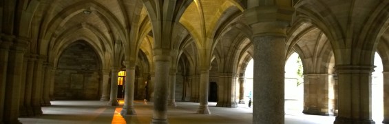 I couldn’t help but notice that the interview was conducted on the campus of the University of Glasgow in the quad and cloister. This should look a bit familiar to Harry Potter fans. (Think Dumbledore’s death.)