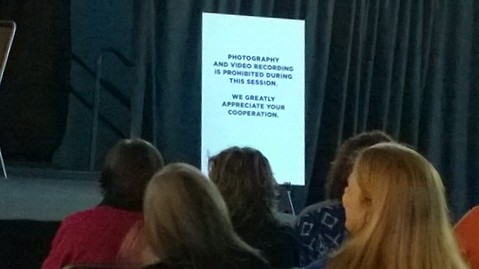 After the dancing, I spent the next hour pleasantly conversing with many Outlanders I heretofore had only known through social media while valiantly ignoring the siren call of MOBY from the depths of my Random House tote bag. Next up was the hour for which we had all been waiting. It has to be something good if a sign like this shows up, right?